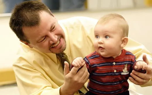 a person holding a baby